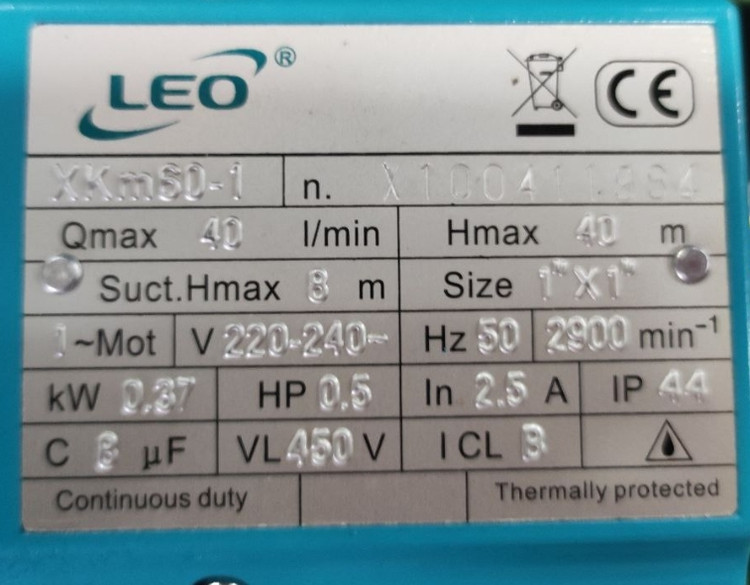 قدرت موتور: 0.37کیلو وات(0.5 اسب بخار)