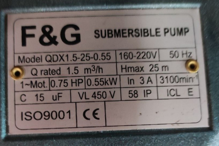قدرت موتور: 0.75اسب بخار(0.55کیلو وات)