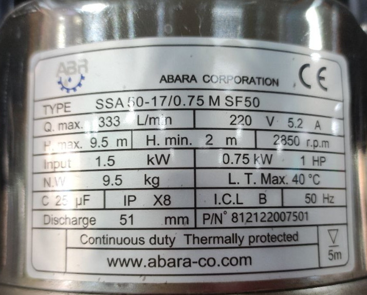 قدرت موتور: 0.75کیلو وات(1 اسب بخار)