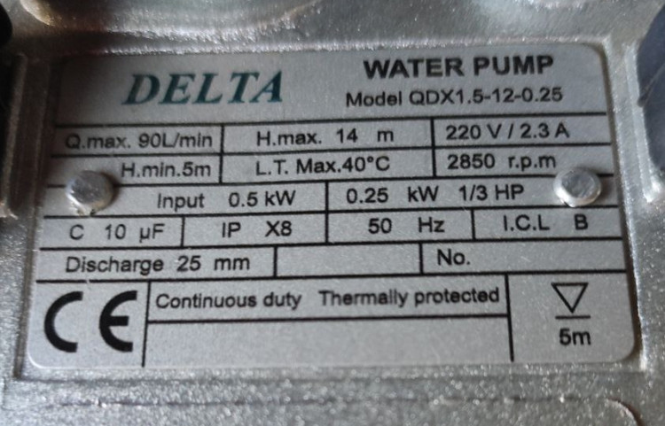 حداکثر آبدهی: 90لیتر در دقیقه