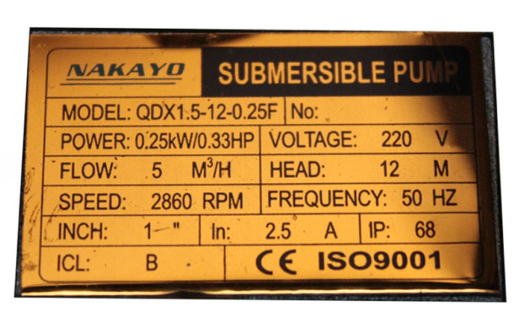 پمپ کف کش 12 متری ناکایو مدل QDX1.5-12-0.25F بسیار با کیفیت و دارای تاییدیه ISO9001 است. این مدل به همراه فلوتر می باشد و برای کاربرد هایی که نیاز به قطع و وصل آب باتوجه به سطح آب است دیگر نیاز به خرید فلوتر مجزا نیست.