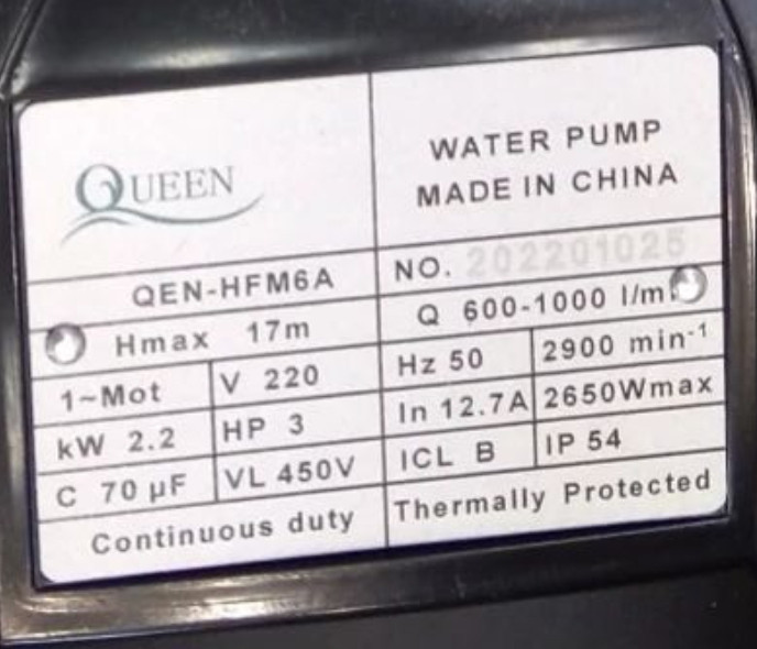 حداکثر آبدهی: 1000لیتر در دقیقه