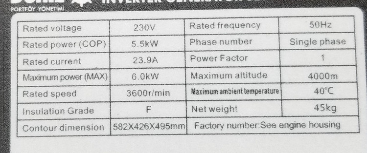 تثبیت کننده ولتاژ دارد.سنسور سطح روغن دارد.چرخ و دسته دارد.نمایگر عقربه ای دارد.