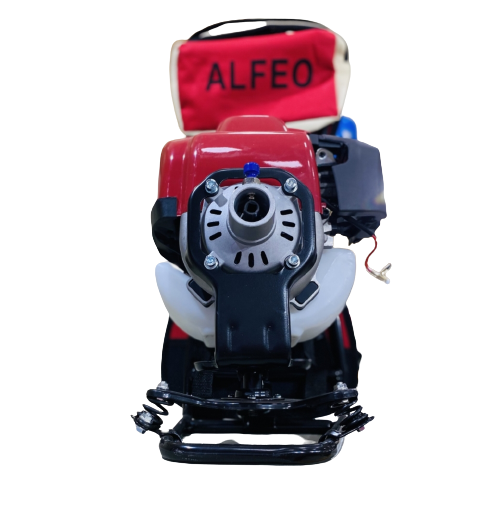 علفتراش پشتی چهار زمانه آلفئو از یک موتور چهار زمانه که به صورت متحرک بر روی شاسی قرار گرفته است تشکیل شده و مانند یک کوله پشتی بر روی پشت قرار گرفته و توسط یک شلنگ رابط، نیرو از موتور به گیربکس انتقال پیدا می کند و بدلیل نوع طراحی، کاربر می تواند به مدت طولانی بدون احساس خستگی و فشار از این دستگاه استفاده نماید.