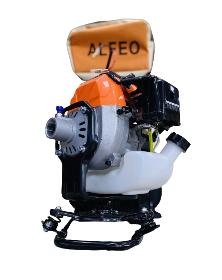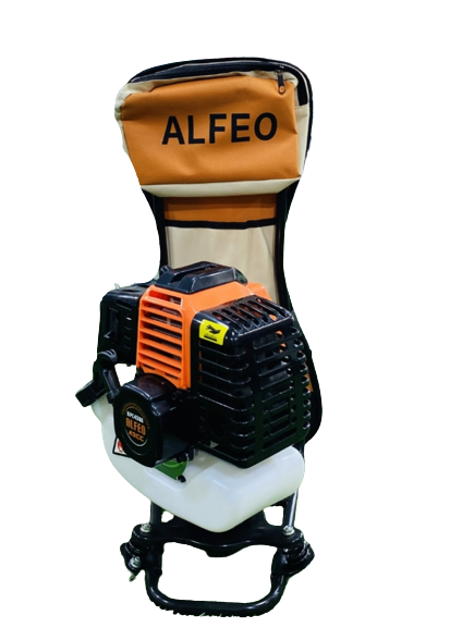علفتراش پشتی دو زمانه آلفئو از یک موتور دو زمانه که به صورت متحرک بر روی شاسی قرار گرفته است تشکیل شده و مانند یک کوله پشتی بر روی پشت قرار گرفته و توسط یک شلنگ رابط، نیرو از موتور به گیربکس انتقال پیدا می کند و بدلیل نوع طراحی، کاربر می تواند به مدت طولانی بدون احساس خستگی و فشار از این دستگاه استفاده نماید.
