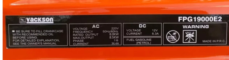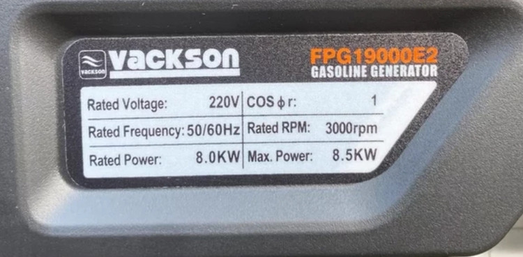 این ژنراتور برق تحتعنوان مدل «VACKSON FPG19000E2» عرضه شده است. این موتور برق انرژی موردنیاز خود را از طریق احتراق بنزین تامین میکند. مخزن سوخت بنزین این محصول حجمی برابر با 25 لیتر دارد. موتوری که از این سوخت انرژی الکتریکی تولید میکند، از نوع چهارزمانه است و قدرتی معادل 17 اسب بخار دارد. ظرفیت این موتور 460 سیسی است. این موتور تکسیلندری به کمک جریان هوا خنک میشود و صدای 97 دسیبلی تولید میکند. با کمک این محصول میتوانید برق AC و DC موردنیاز دستگاههای برقی خود را تامین کنید. سیم پیچی موتور برقهای واکسون 100% از مس میباشد . توان این ژنراتور 8500 وات است و از طریق دو پریز درپوشدار برق AC را در اختیار کاربر قرار میدهد. این برق ولتاژی برابر با 220 ولت دارد. همچنین برق DC خروجی نیز با ولتاژی برابر 12 ولت از شدتجریانی 8.3 آمپری برخوردار است. این محصول وزن مناسبی دارد که به راحتی قابل جا به جای است.