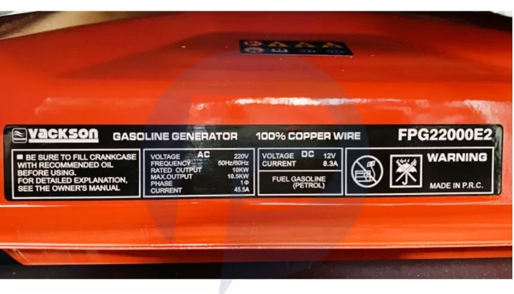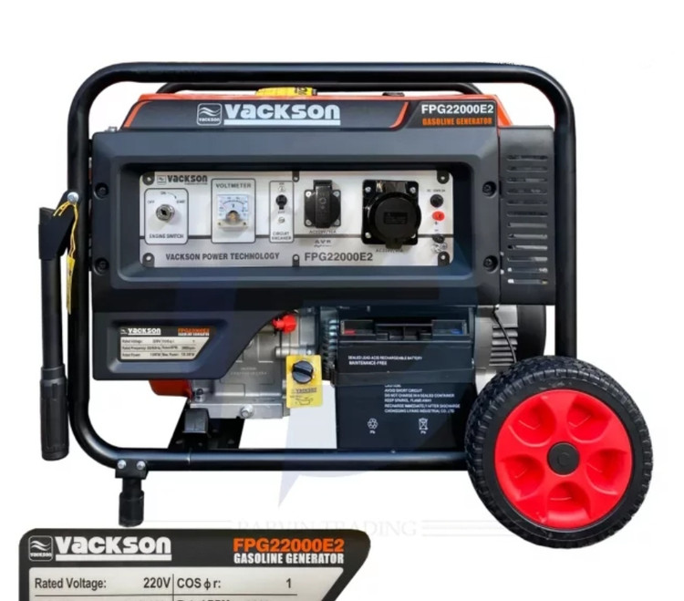این ژنراتور برق تحتعنوان مدل «VACKSON FPG22000E2» عرضه شده است. این موتور برق انرژی موردنیاز خود را از طریق احتراق بنزین تامین میکند. مخزن سوخت بنزین این محصول حجمی برابر با 25 لیتر دارد. موتوری که از این سوخت انرژی الکتریکی تولید میکند، از نوع چهارزمانه است و قدرتی معادل 20 اسب بخار دارد. ظرفیت این موتور 500 سیسی است. این موتور تکسیلندری به کمک جریان هوا خنک میشود و صدای 97 دسیبلی تولید میکند. با کمک این محصول میتوانید برق AC و DC موردنیاز دستگاههای برقی خود را تامین کنید. سیم پیچی موتور برقهای یاماها 100% از مس میباشد . توان این ژنراتور 10500 وات است و از طریق دو پریز درپوشدار برق AC را در اختیار کاربر قرار میدهد. این برق ولتاژی برابر با 220 ولت دارد. همچنین برق DC خروجی نیز با ولتاژی برابر 12 ولت از شدتجریانی 8.3 آمپری برخوردار است. این محصول وزن مناسبی دارد که به راحتی قابل جا به جای است.